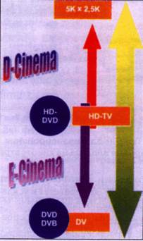 ![]() Рис. 8. Шкала качества для крупноформатной электронной проекции простирается сегодня от DV-стандарта со скоростью передачи данных 25 Мбит/с через ТВЧ-качество до будущего, сегодня технически пока не реализуемого, цифрового мастер-оригинала |